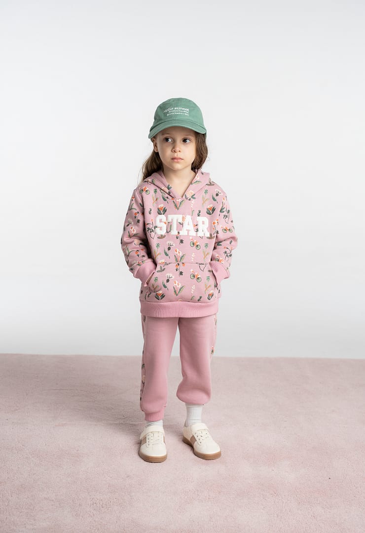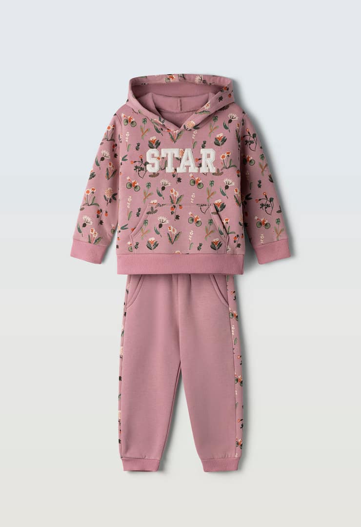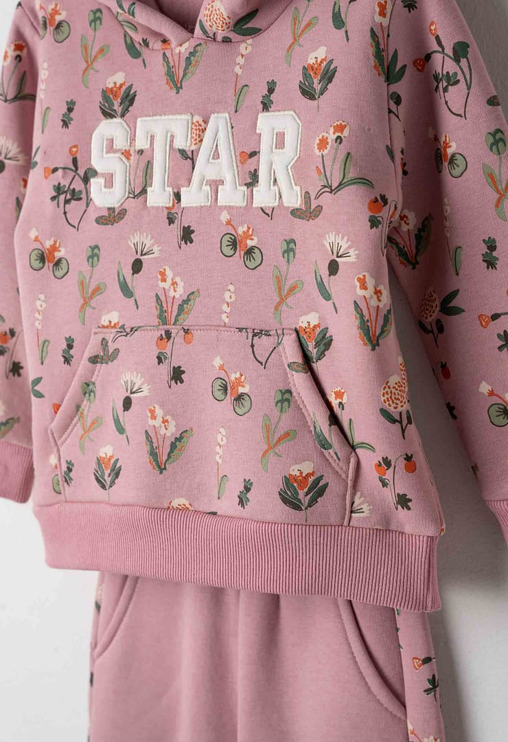Μπλούζα με κουκούλα και τύπωμα “STAR”. Φόρμα με λάστιχο στη μέση, μονόχρωμη.