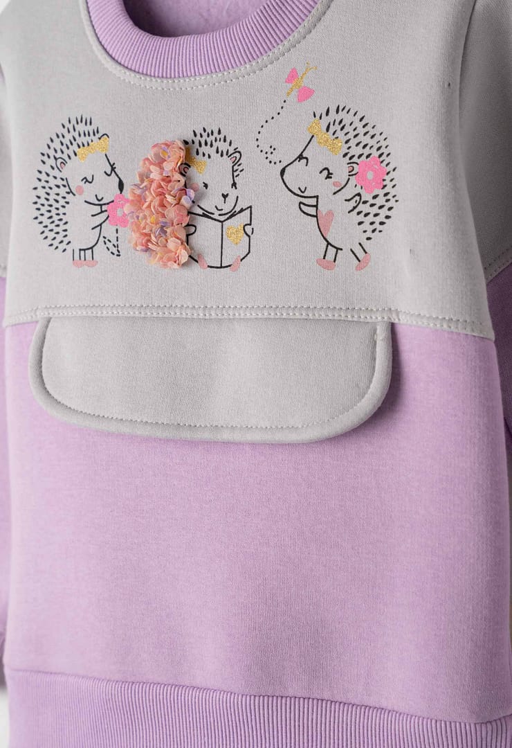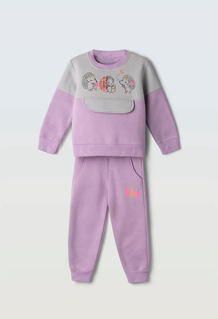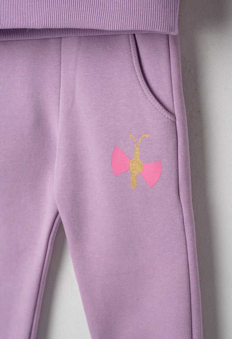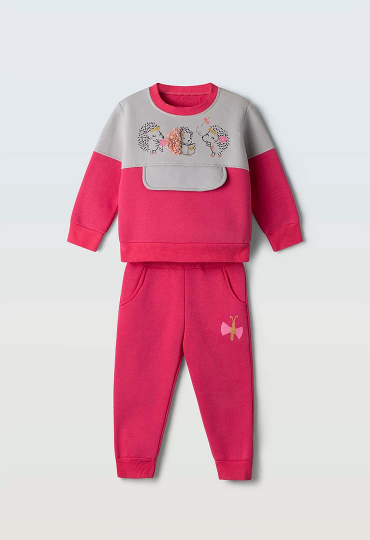 Μπλούζα με στρόγγυλο γιακά και στάμπα. Φόρμα με λάστιχο στη μέση, μονόχρωμη.