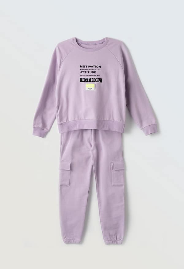 Μπλούζα με στρογγυλό γιακά και τύπωμα “OMG!”. Κολάν με λάστιχο στη μέση και εμπριμέ τύπωμα.